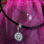 Handcrafted in the United States made from Sterling Silver. Genuine 2mm leather cord with Sterling Silver lobster clasp. Pendant wheel 10mm in diameter.