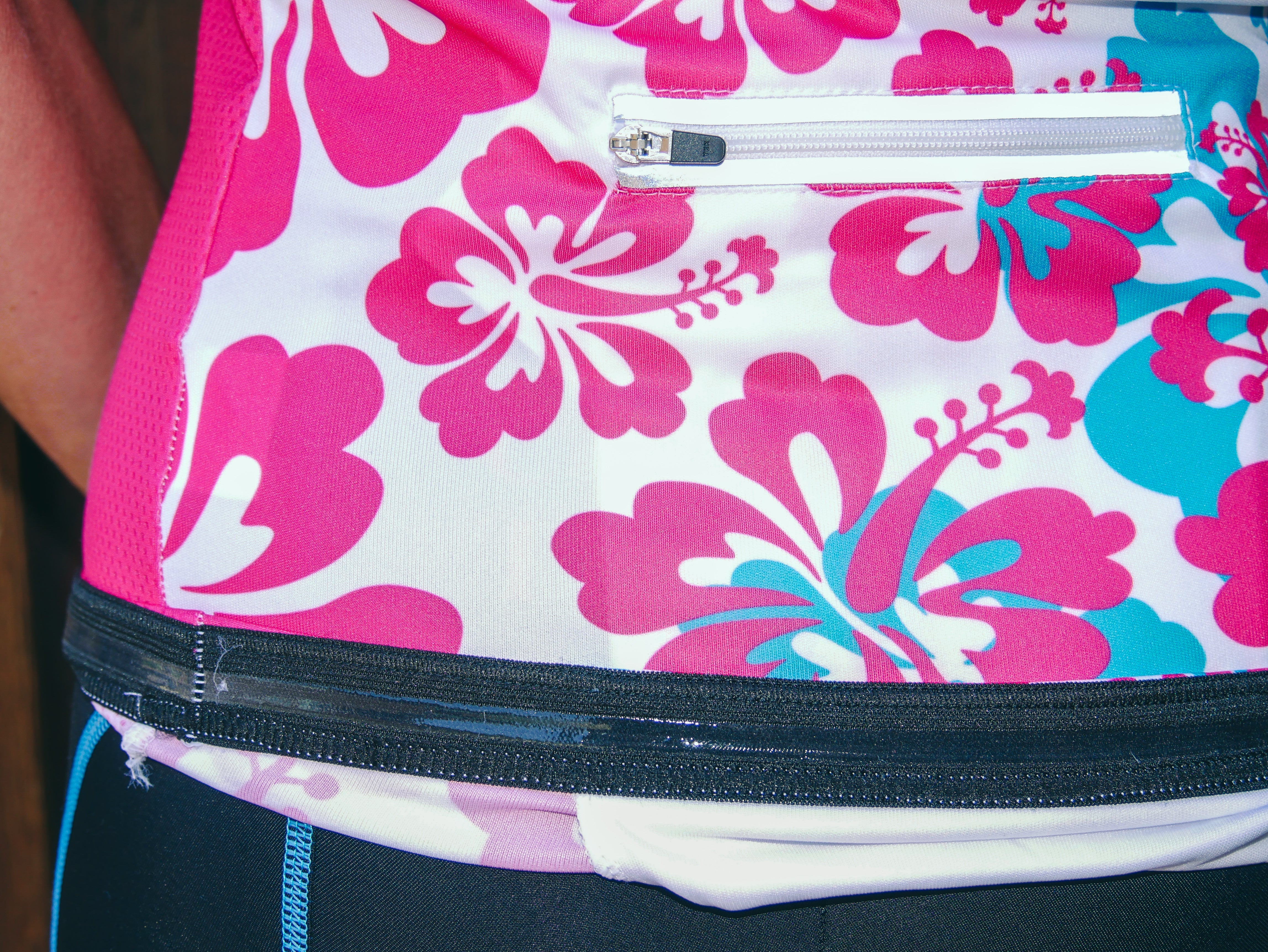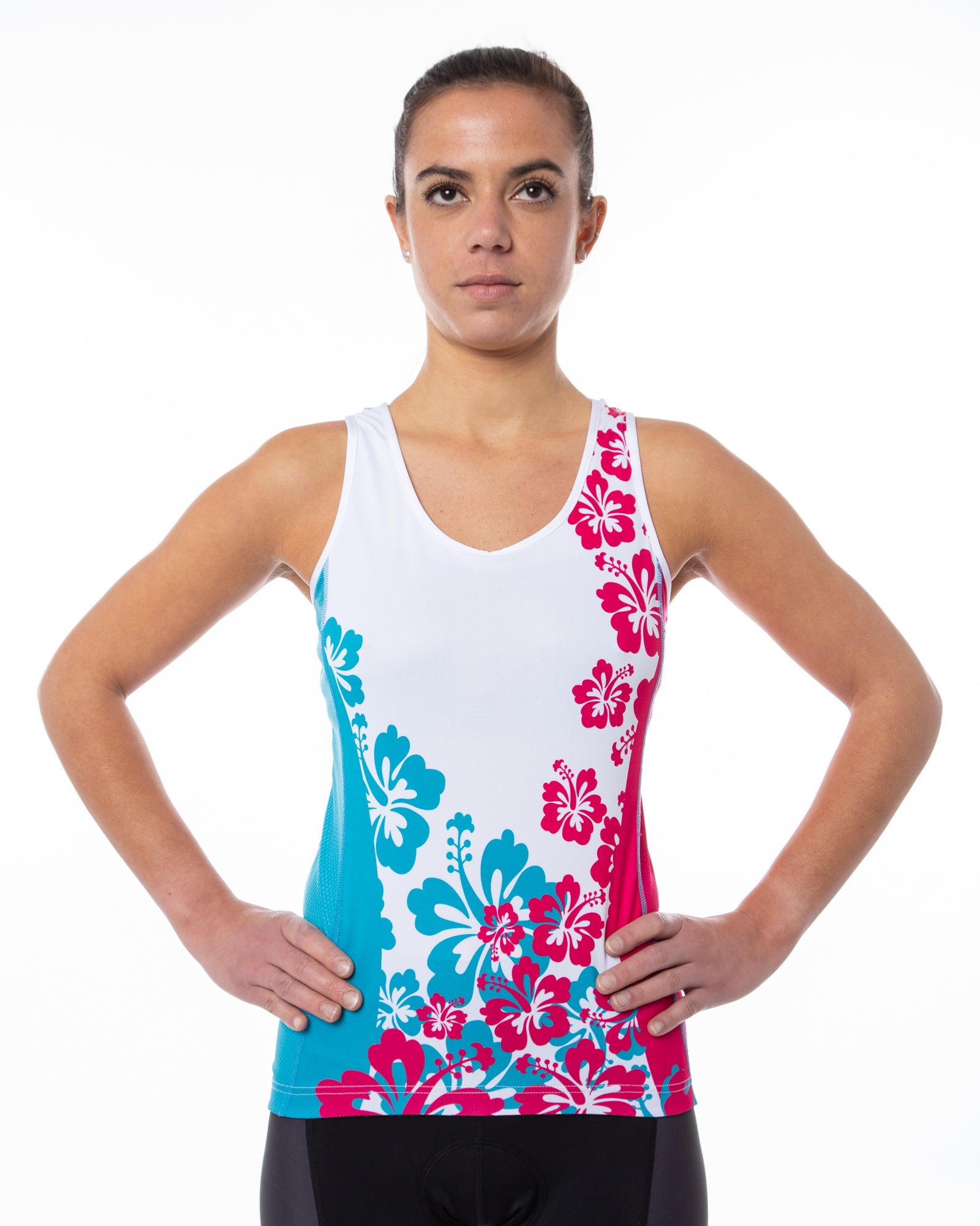 Cool Breezin' is the theme for this beautiful refreshing cycling tank jersey, made of Italian technical fabric with our Cycling Chicks Hawaiian Island design.