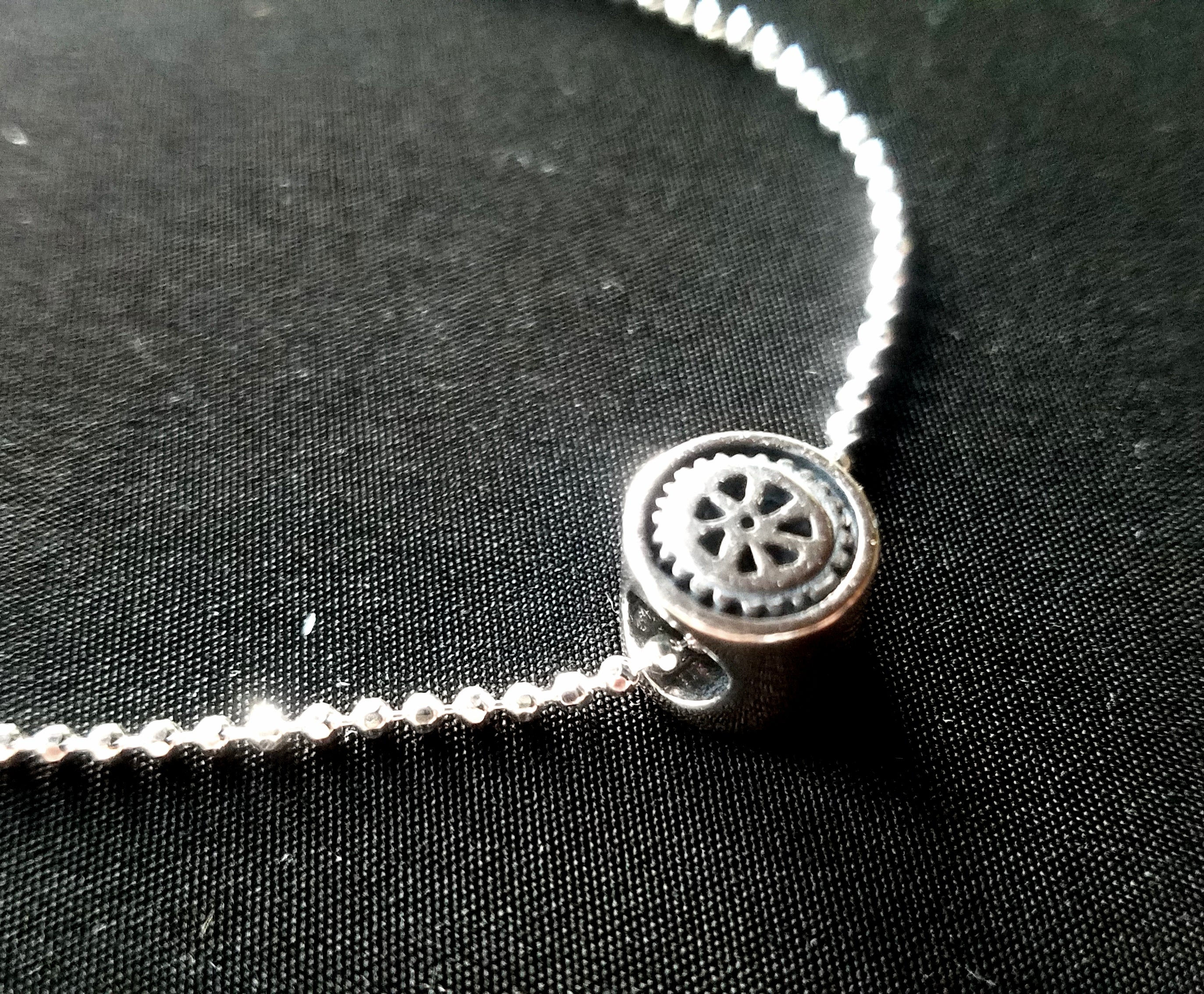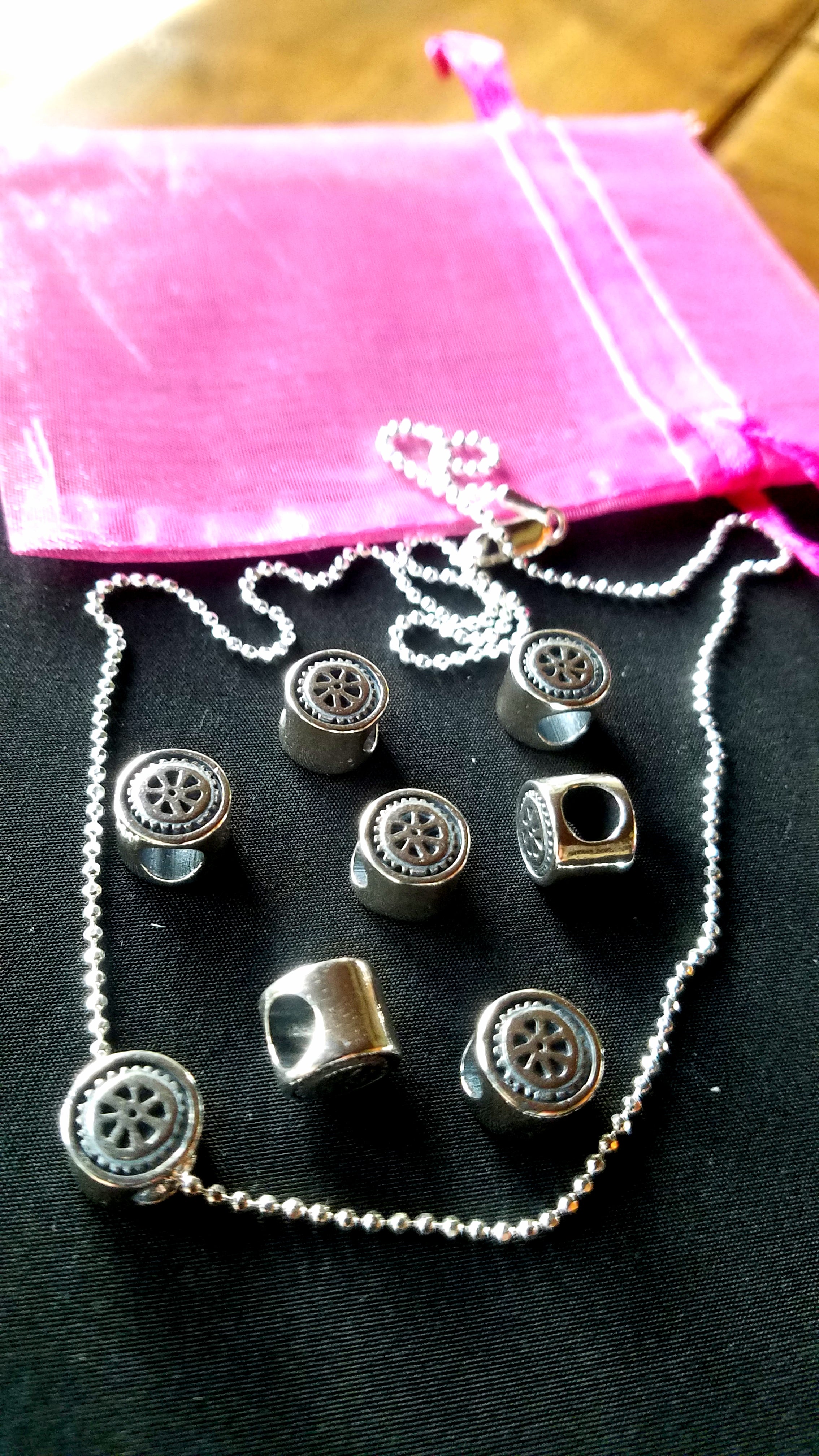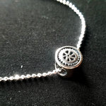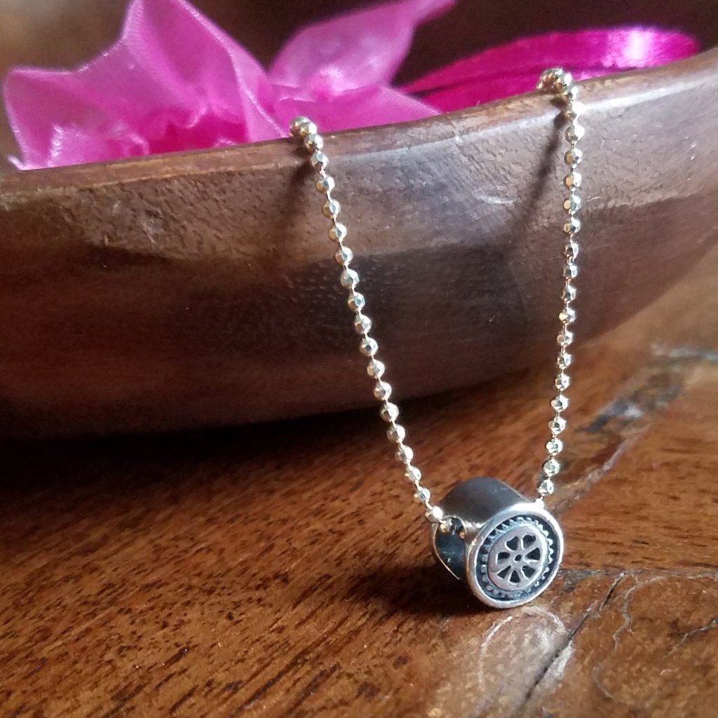 Our custom Sterling Silver Mini Wheel Bead is presented on a 16" diamond cut Sterling Silver bead chain.