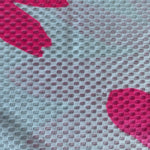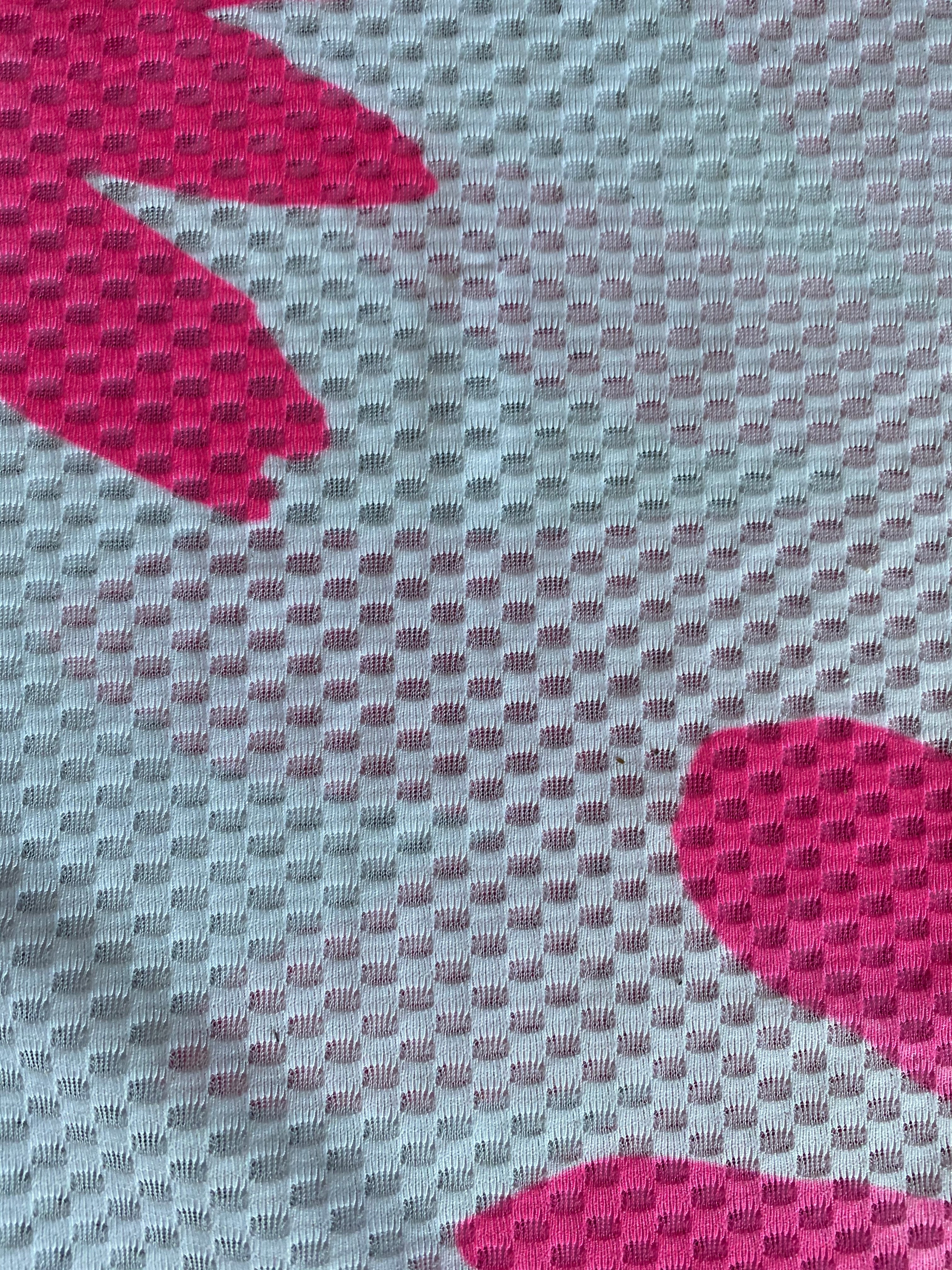 We utilize a high tech synthetic fabric with dimples for moisture wick and aeration.